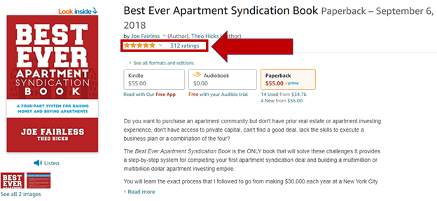 We were able to generate over 300 reviews for the Best Ever Apartment Syndication Book using this strategy.