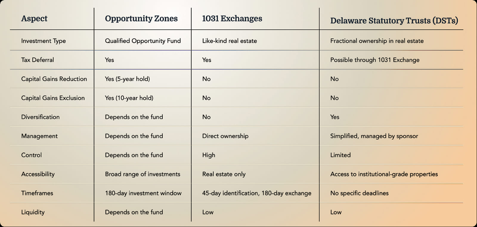 Comparing Opportunity Zones, 1031 Exchanges, and DSTs