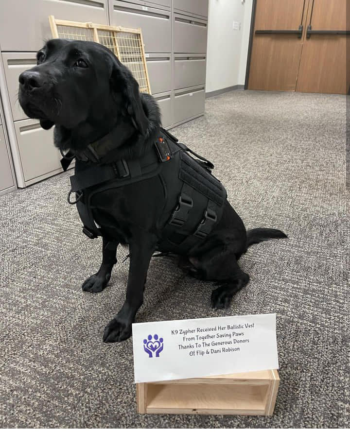 Together Saving Paws provides bulletproof vests for K-9s trained in narcotic detection, as well as those specialized in sniffing out electronic storage devices. The latter group, known as Electronic Storage Device (ESD) K-9s, plays a crucial role in combating child exploitation and human trafficking. These highly trained Labrador Retrievers can detect scents emanating from hidden SD cards, aiding law enforcement in apprehending criminals who attempt to conceal evidence behind walls or other hiding places. The ballistic vests, costing around $1100 each, offer protection to these canine heroes.