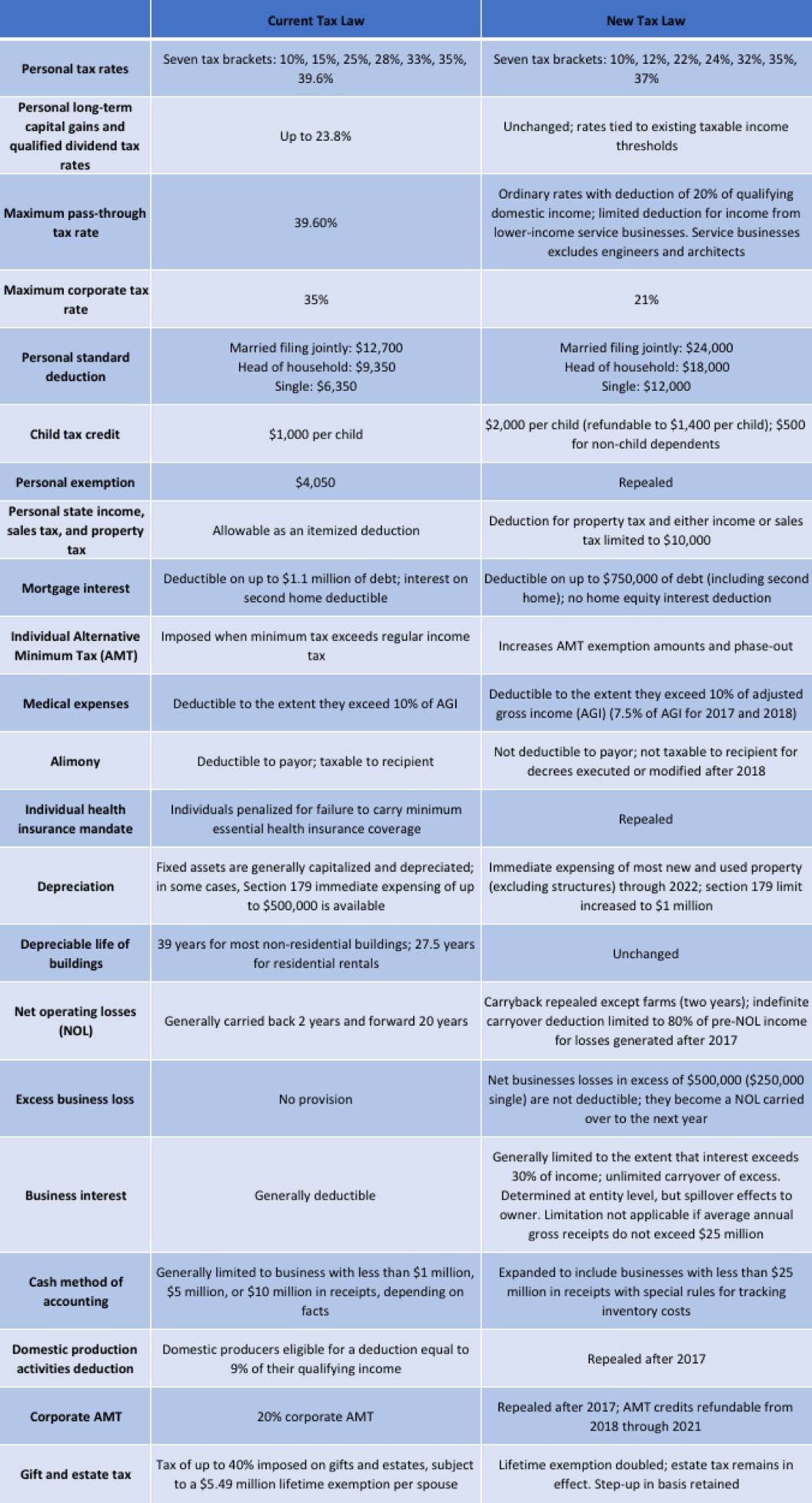 After the tax plan was signed, my business partner and I had a meeting with our CPA to discuss tax strategies for both the remainder of 2017 and for the upcoming year. They also provided us with the chart below, which summarizes the key provisions of the new law. I recommend meeting with your CPA to determine how the tax reform will impact your business and what tax strategies to implement to maximize your benefits.