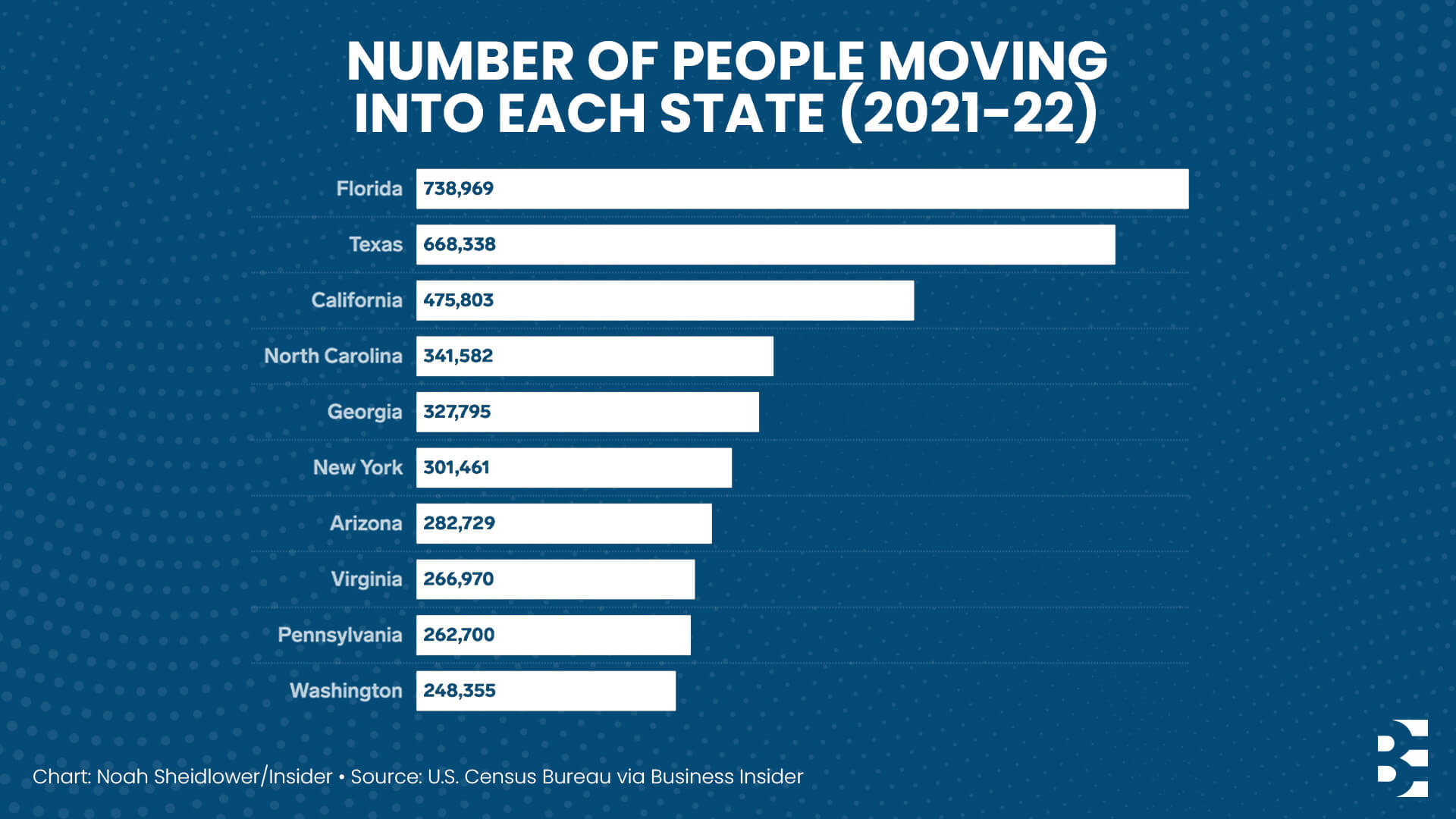 Since 2000, more than 9 million people have relocated to Texas, and between 2021 and 2022 alone, more than 650,000 people moved to the Lone Star State, according to Census Bureau data. Only Florida welcomed more residents during that time. Texas passed the 30 million mark in total population in 2022 and is second only to California — which, while sitting at nearly 40 million residents, has seen a mass post-pandemic exodus that has seen its total population decrease significantly, with more than 800,000 leaving the state during that same 2021-22 window.