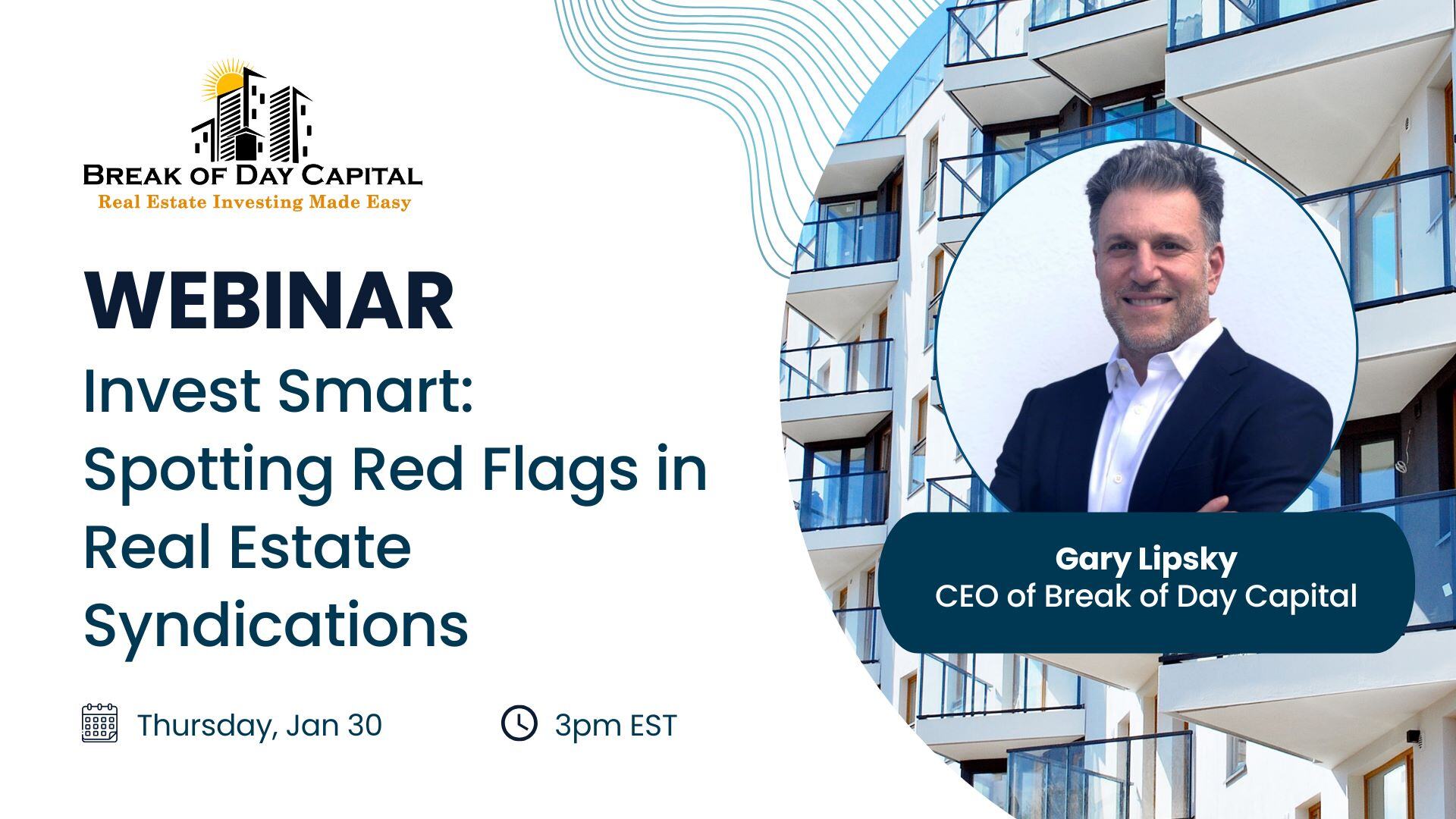 Join Gary Lipsky, CEO of Break of Day Capital, to learn how to identify the key warning signs in real estate sponsors before you invest.