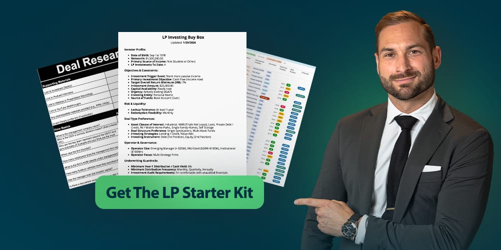 🛠️ The LP Starter Kit gives you a systematic approach to vetting private deals before you wire six figures based on gut feel. Pascal Wagner used this framework to turn $3.3M into $150K/year in passive income for his family. Grab the free kit.