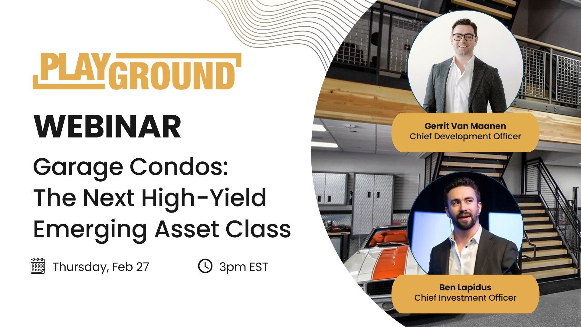 Join Gerrit Van Maanen and Ben Lapidus, the developers of Playground, as they provide a breakdown of the garage condo investment thesis and how they are vastly outperforming traditional commercial real estate assets.