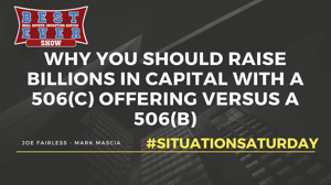 I hope you’re having a wonderful — no, best ever weekend, and because today is Saturday, we’ve got a special segment for you that we do sometimes, called Situation Saturday. You’re gonna love this is you’re a money raising machine or want to be a money raising machine, because we are with an investor who has developed over one billion dollars – yes, with a b – of property, and he has over 12 years of experience in real estate. We’re gonna talk about why he chose (or is choosing) to do a 506(c) offering, versus a 506(b) offering on his current deal. How are you doing, Mark Mascia?