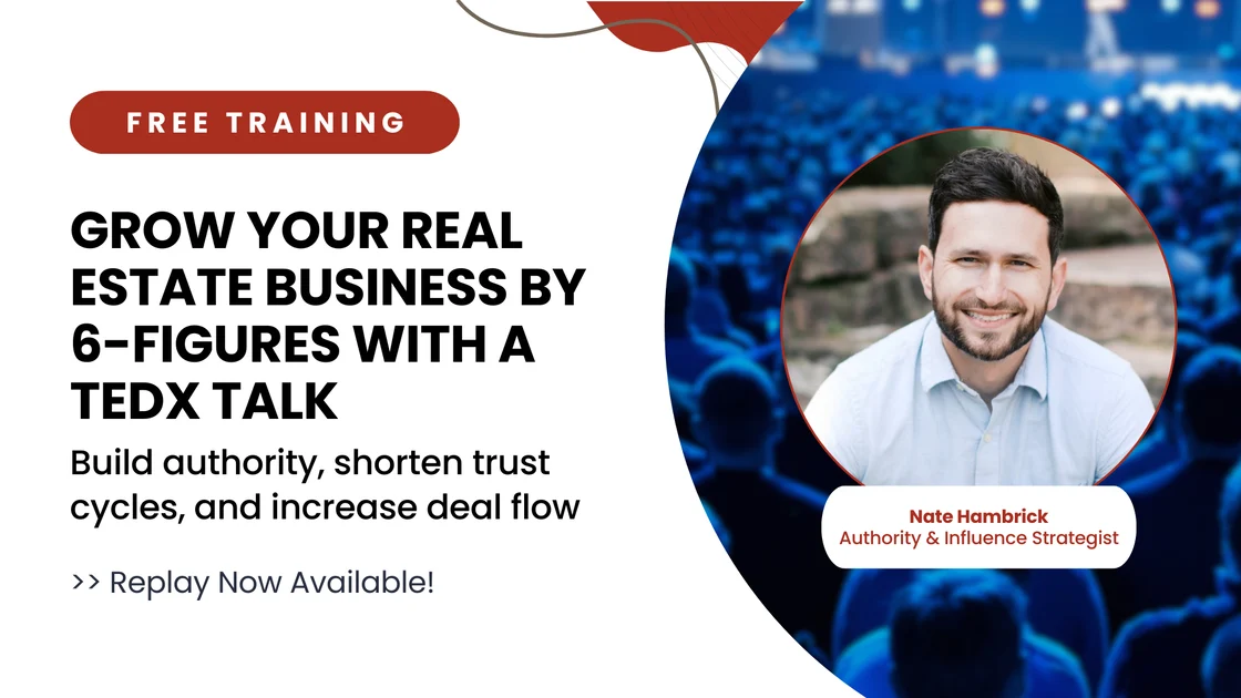 In this session, Nate Hambrick outlines how platforms like TEDx can be used to build authority, shorten trust cycles, and increase deal flow.